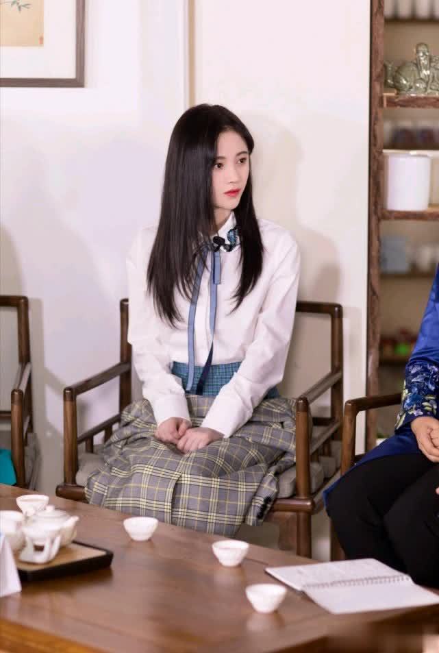 而她平时的穿搭也很吸引人,一件白色衬衫+蓝色格子半身裙,简约又不失优雅,淑女范十足。衬衫搭配领带,有一种学生装的感觉,乖乖的样子,很可爱,很像是校园中的三好学生。